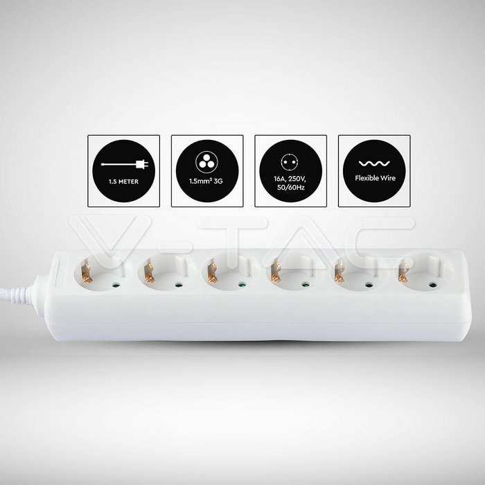 Prelungitor V-TAC, cu impamantare, 6P-1,5M, cablu 3x1.5mm²