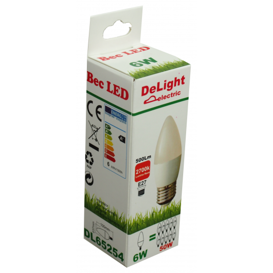 DeLight BEC LED LUMÂNARE E27 6W 6400K C37 15.000H