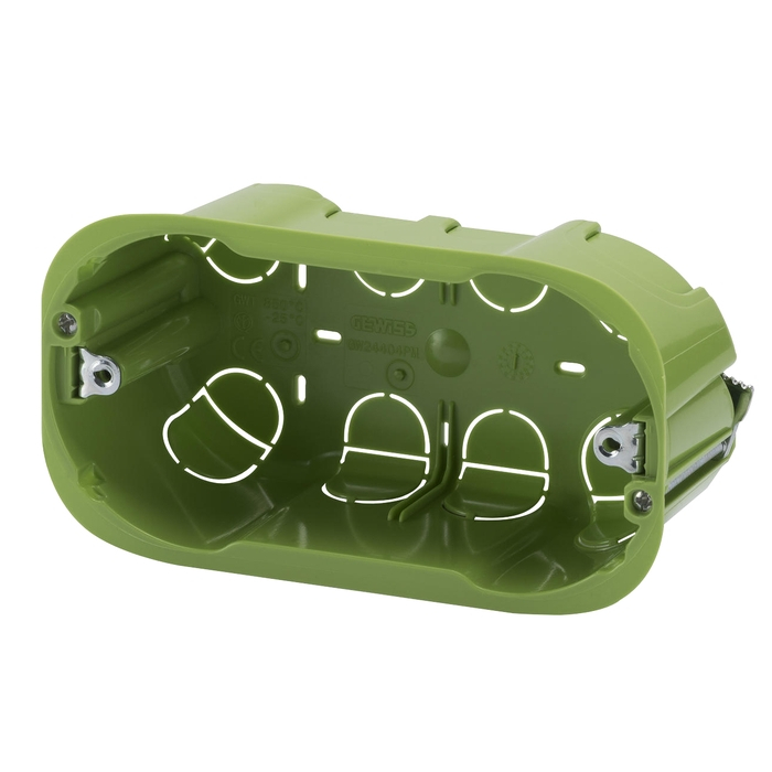 Doza de aparat GW24404PM pentru gips carton, 4 module, 133 x 73 x 50 mm. Doza este realizata din masa plastica termorezistenta, are forma dreptunghiulara, 4 module si are dimensiunile 133x73x50 mm. Este destinata montarii aparatajului standard italian pe pereti de gips carton. Se monteaza sub tencuiala. Produsul are grad de protectie IP20 - se va amplasa in interiorul locuintelor.